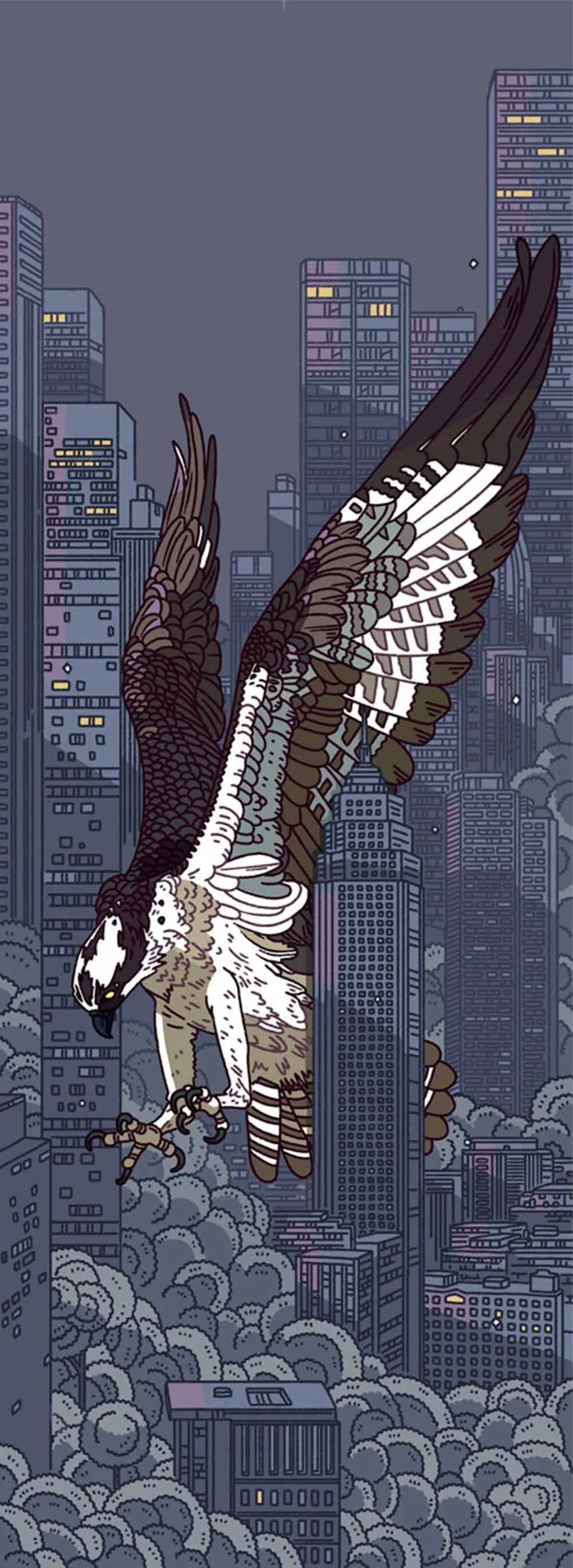 Illustrator Hayden Maynard shares his passion for wildlife (birds in particular) with the creation of a unique series, ‘Urban Forest’. Playing with scale, Hayden takes a larger than life approach highlighting the majestic quality of nature, bringing each animal to the centre of his illustration. Detailed line work creates depth and dimension, inviting the viewer to walk through and explore the urban landscapes. Juxtaposing the fluidity of animals and nature against the rigidity of cityscapes, Hayden creates a thoughtful and unexpected experience about our interaction with wildlife and urban development.