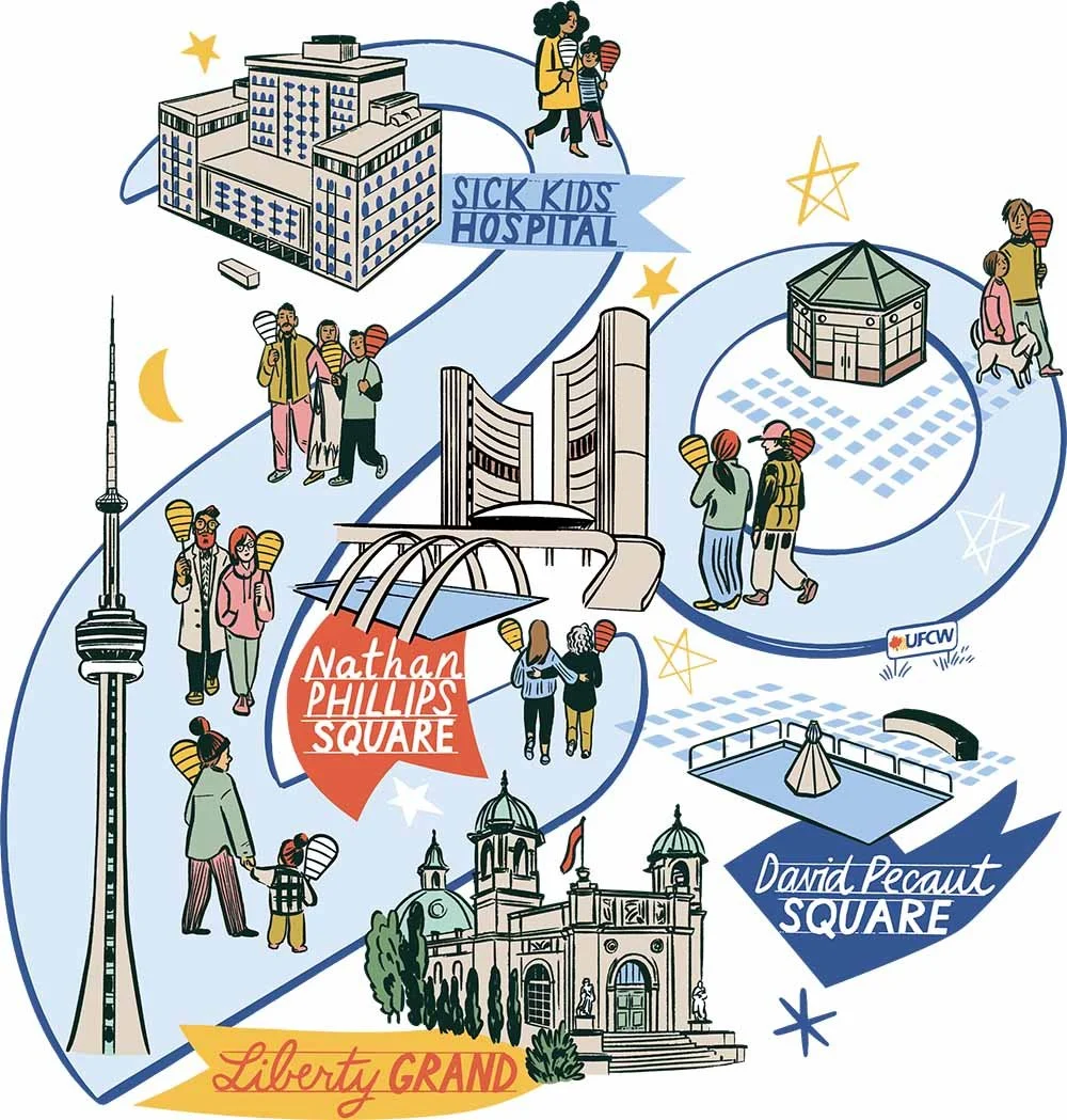 Katy was born in Toronto, the daughter of elementary school teachers. She’s lived in different neighbourhoods in the city, from Baby Point, to Little Italy and currently Leslieville. She studied at the Ontario College of Art (now OCAD U) and learnt everything from figure drawing with Paul Young, to mixed media with Linda Montgomery, photography with Barbara Astman, typography with Ann Cooper, design, and conceptual illustration with Jerzy Kolacz. Katy graduated with honours, made prints of her portfolio, and hustled her way into meeting Art Directors and cold-called editorial departments for work. With years of experience using traditional media, she’s merged her skills and creates most of her work digitally. She lives with her biggest supporter and creative partner Jay, their teen daughter, and a cat named Kitty.